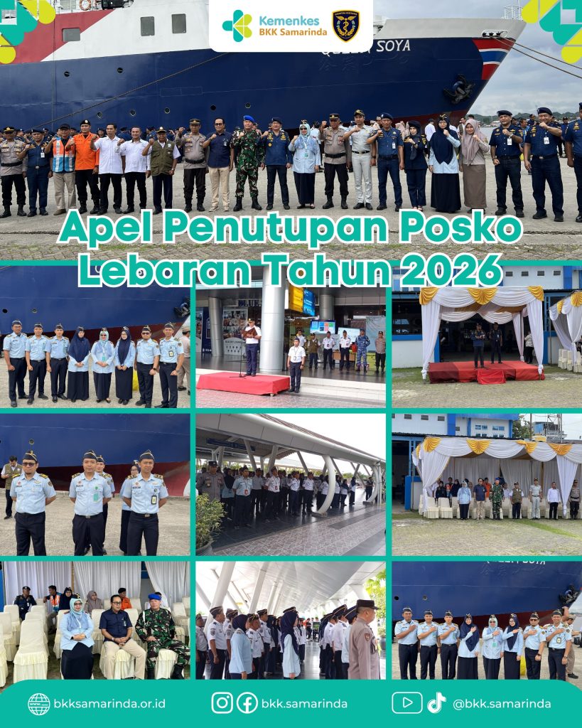 Balai Kekarantinaan Kesehatan (BKK) Kelas I Samarinda telah melaksanakan kegiatan Apel Penutupan Posko Lebaran Tahun 2026 sebagai penanda berakhirnya rangkaian pelayanan kesehatan selama arus mudik dan balik Hari Raya Idulfitri.